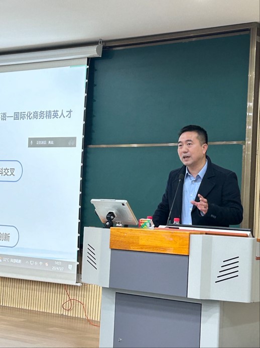 新学期伊始,为帮助2023级商务英语专业本科生充分了解不同学习方向的培养计划与专业分流的相关知识,我院于3月7日下午14:00-17:00在北校区北一教南楼117桃李讲堂与215思明讲堂举行了2023级商务英语专业本科生专业分流介绍会,学院副院长汪谓超、法律英语系主任张新红、英语教学部主任严小庆、经贸英语系主任何宇菲、商务英语系副主任林洁等参加会议并进行专业分流介绍。