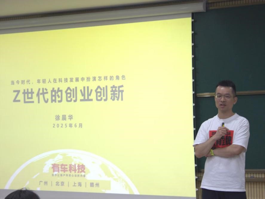 随后,数双2402班校外导师、有车科技创始人徐晨华为同学们带来了题为“Z世代的创业创新”专题讲座。徐晨华导师首先分享了自己的求学之路以及作为一名新人初入新闻行业的有趣故事,鼓励同学们要有勇于实践、敢于试错的勇气。之后再从如何成为一名优秀“产品经理”的角度出发,提出要有“以始为终”的信念,并向同学们提出四点寄语:一是要博览群书,有时间时多看书,丰富知识体系;二是多向榜样学习,多和优秀的人沟通和交流;三是做到“吾日三省吾身”,勇于反省自身的言行举止,才能有进步和成长;四是落实行动,将所思所想实践于行动,才能真正实现自己的目标。讲座过程中同学们认真听讲,纷纷表示收获颇丰,讲座内容为同学们未来的职业规划与自身成长提供了新的启发和指引。
