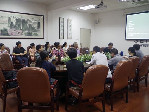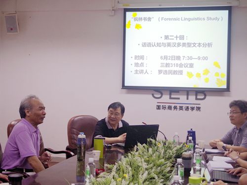 活动正式开始之前,徐优平博士扼要回顾了“枫林书舍”的开办情况,并邀请该论坛的发起人杜金榜教授介绍“枫林书舍”开办的初衷和发展过程。杜老师首先对罗选民教授的到来表示衷心地感谢。杜老师指出,该论坛取名“枫林书舍”,英文名为Forensic Linguistics Study。这主要是考虑到“枫林”与“Forensic Linguistics”谐音,突出了论坛以法律语言学学术探讨为基础的跨学科定位,也寓意广外专家、教师、莘莘学子汇聚在美丽的白云山麓,云溪河畔,致力于跨学科间交流的清新正气。该论坛迄今已邀请到数十位不同领域的专家学者光临“寒舍”,为广大师生奉献了十多场学术盛宴。杜老师指出,山不在高,有仙则灵,“枫林书舍”能邀请到云山领军学者罗选民教授,标志着“枫林书舍”的影响力将得到进一步提升。