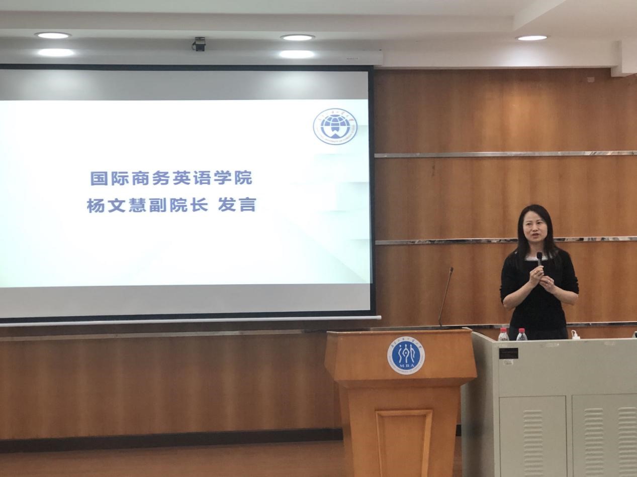 国际商务英语学院副院长杨文慧代表学院对国际部长期以来给予的关心和支持表达由衷的感谢。杨文慧提到,商英学院致力于培养国际化商务人才,介绍了商英学院国际合作项目概况,并重点推介了学院牵头的广外-昆士兰0.5+1合作项目和面向经合组织(OECD)的信息数据人才培养项目。杨文慧邀请有志于走向国际、走向世界的学子加入商英学院大家庭,并鼓励广外学子有机会多出去看看,学会改变世界、拥抱世界,从而服务世界。