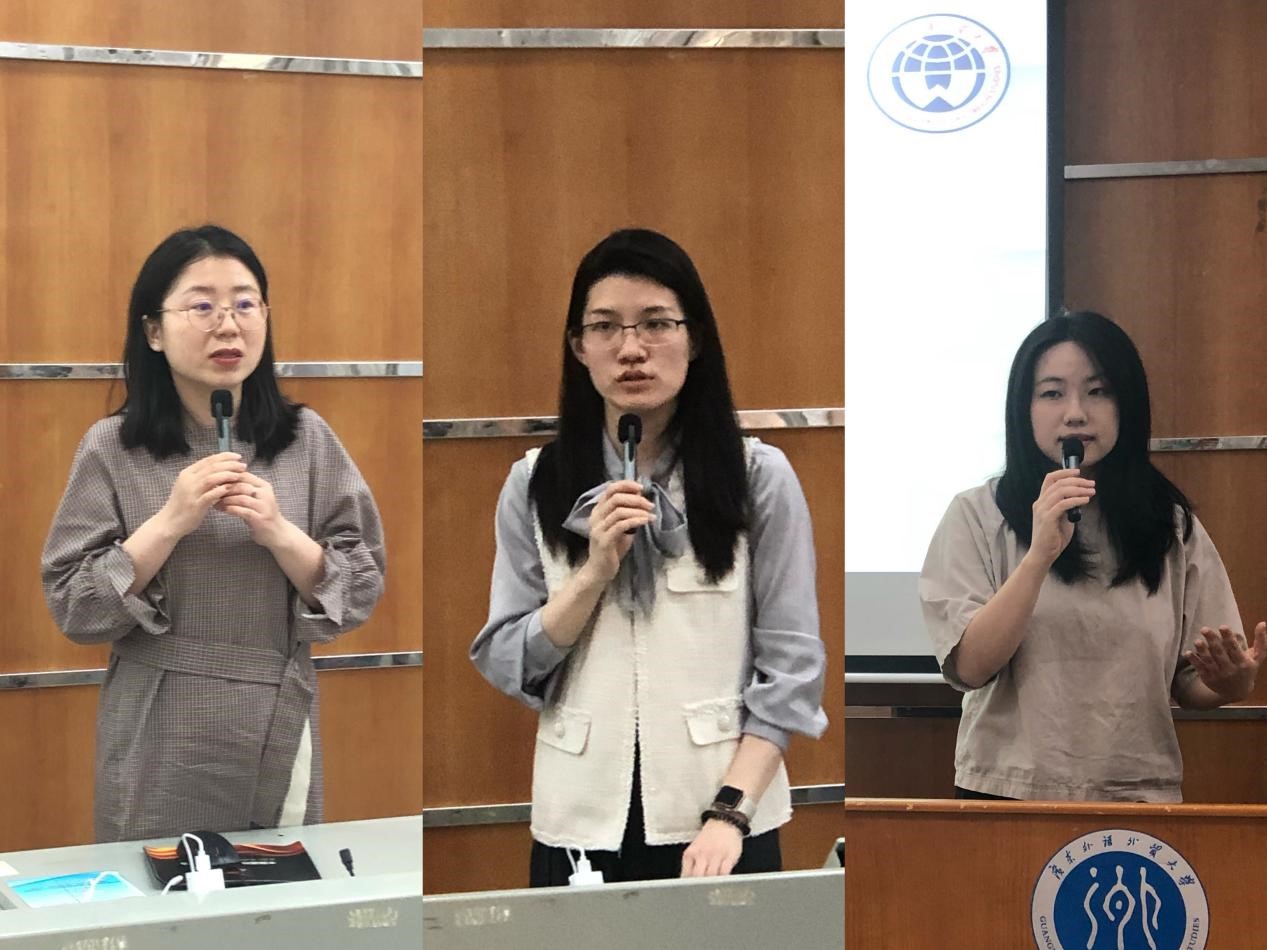 外国语言学及应用语言学研究中心博士生张才蕙,商英学院本科生谭炜怡,英文学院本科生连可茵和西语学院本科生谢璇榕等获奖学生代表,分别就广州市菁英计划留学经历、英国剑桥大学格顿学院在线未来商业领袖项目、荷兰阿姆斯特丹大学访学经历和留基委奖学金资助赴捷克布拉格访学的经历进行精彩分享。