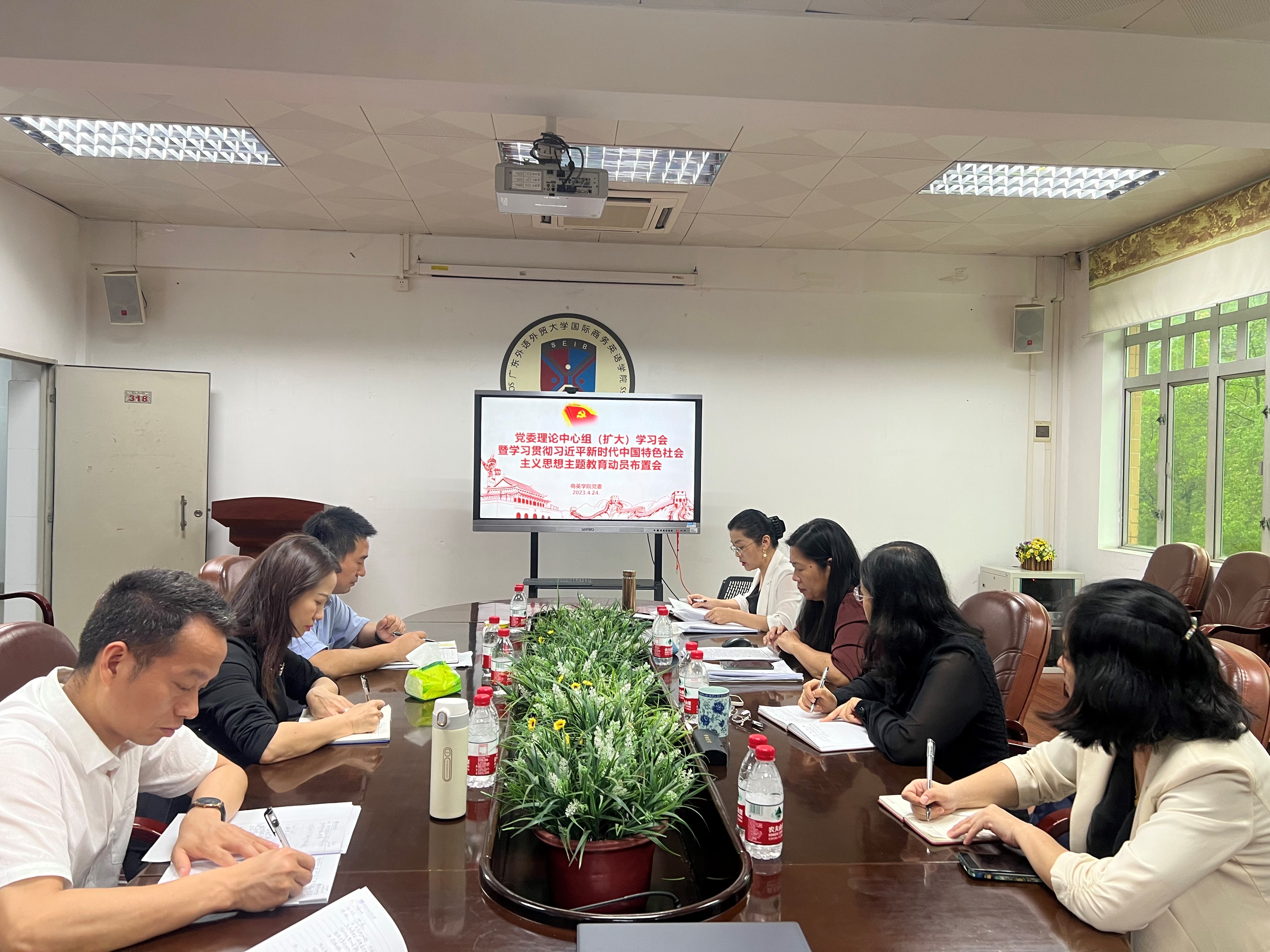4月24日下午,商英学院党委在三教318召开党委理论中心组(扩大)学习会暨学习贯彻习近平新时代中国特色社会主义思想主题教育动员布置会,对学院开展主题教育进行动员部署。学院党委委员、领导班子、各系部办主任、师生党支部书记、挂职干部等参会,会议由学院党委副书记杜焕君主持。