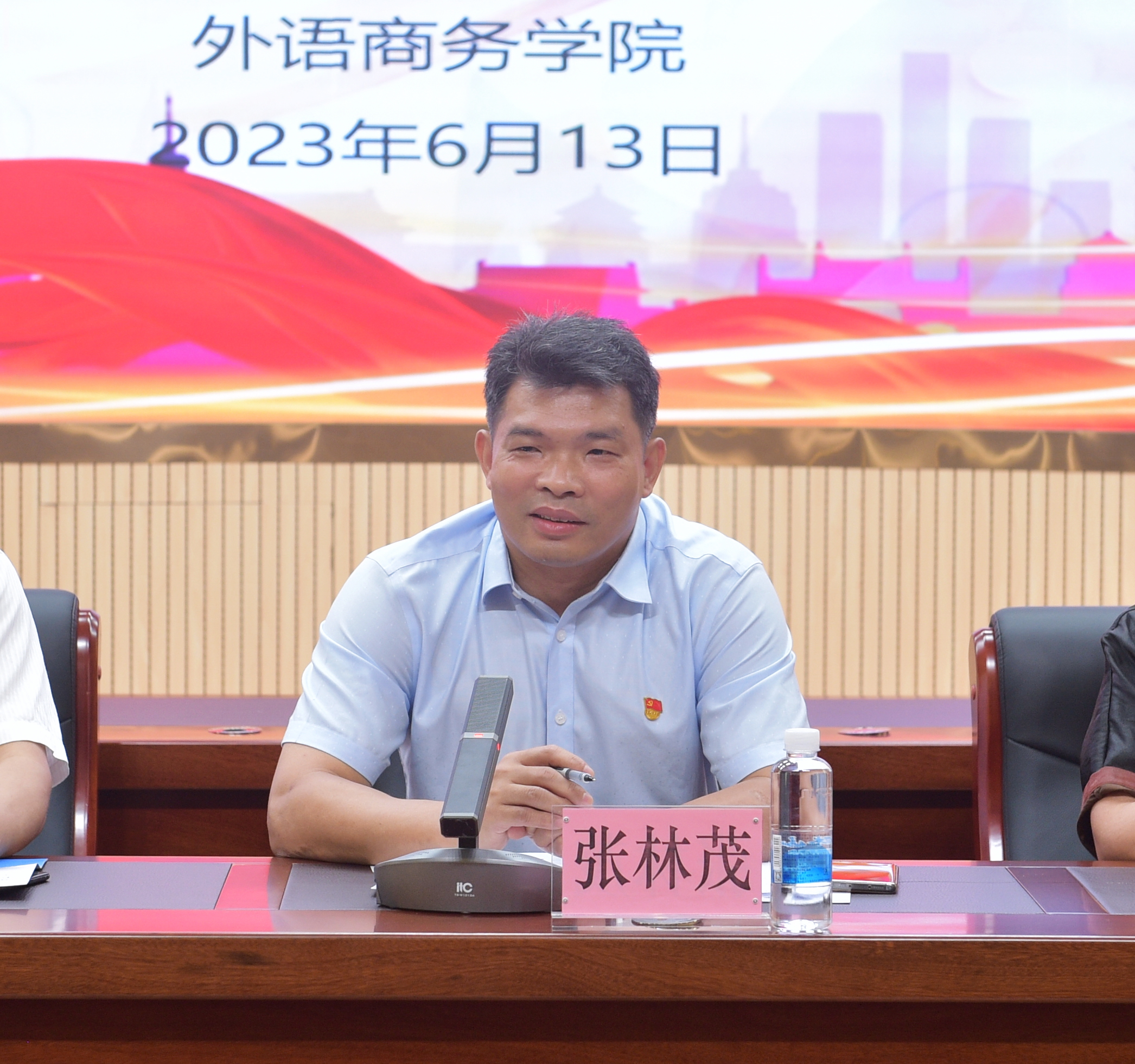 张林茂强调,希望外语商务学院和广外商英学院以结对共建为新的合作契机,不断加强互动和交流合作,将结对落在实处,将共建变成共赢,并对两个学院结对共建提出三点希望:形成一项党建+业务双融合、双促进的合作机制;开辟一条行之有效的师资队伍能力提升的道路;打造一批特色鲜明的协同育人项目。广东松山职业技术学院已成为广外的实践教学基地。欢迎广外组织师生到我们松山学院开展实践教学等活动,同时也希望广东松山职业技术学院学生有机会到广外参观学习,体验高水平大学的学习和生活。