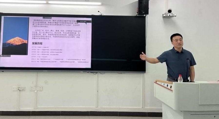 2023年6月29日,“电商/跨境/互联网与未来工作筹划分享会”在广东外语外贸大学白云山校区第一教学楼南楼106室顺利召开。活动邀请了商英学院实践教学基地——广州哆啦科技有限公司合伙人赵欣担任主讲嘉宾,由商英学院教学副院长汪谓超主持。