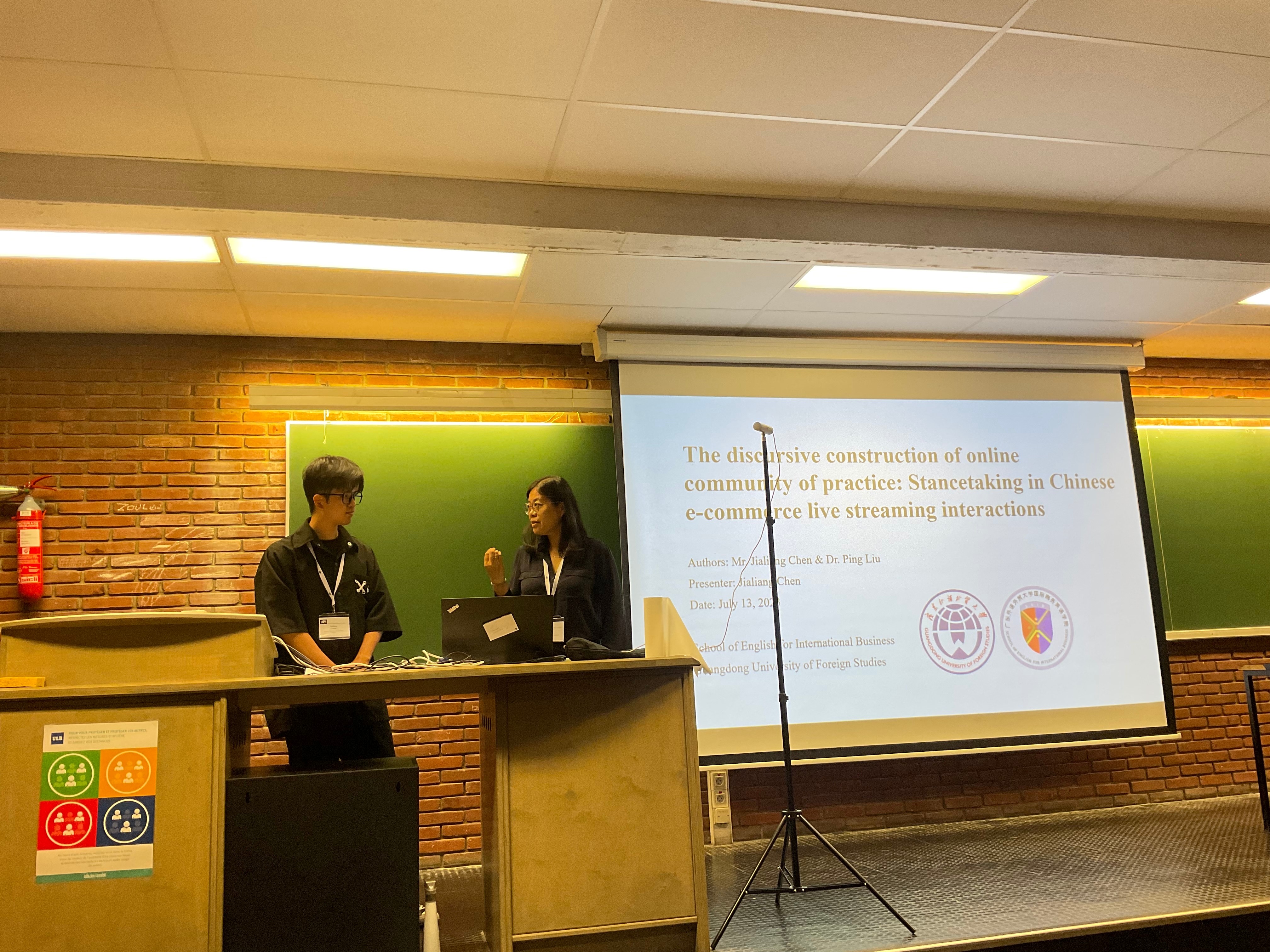 刘平教授、黄旭博士和杨璘璘同学参加了我校冉永平教授组织的“Impoliteness in Chinese social media”(中国社交媒体中的不礼貌问题)专题论坛。刘平教授和杨璘璘同学在人际语用学视角下,探究公益电商直播互动中假意冒犯(ostensible offence)的冒犯对象、关涉的面子类型、所实现的交际功能以及遵循的网络实践共同体规约。黄旭博士在元语用视角下讨论了中文社交网络上“不礼貌”与“冒犯”的本质内涵及其区别性特征,发现了两者在中国文化中的细微差别。刘平教授和陈嘉亮博士参加了Miriam Locher教授和Thomas Messerli博士组织的“It’s not what you are like, it’s what you like: Appraisal, stance and evaluation in online fandom”(重要的不是你像什么,而是你喜欢什么:网络粉丝圈中的评价、立场和评估)的专题论坛。他们分析了中国电商直播节目中的站位表达(stance expressions)与网络粉丝圈的动态关系。