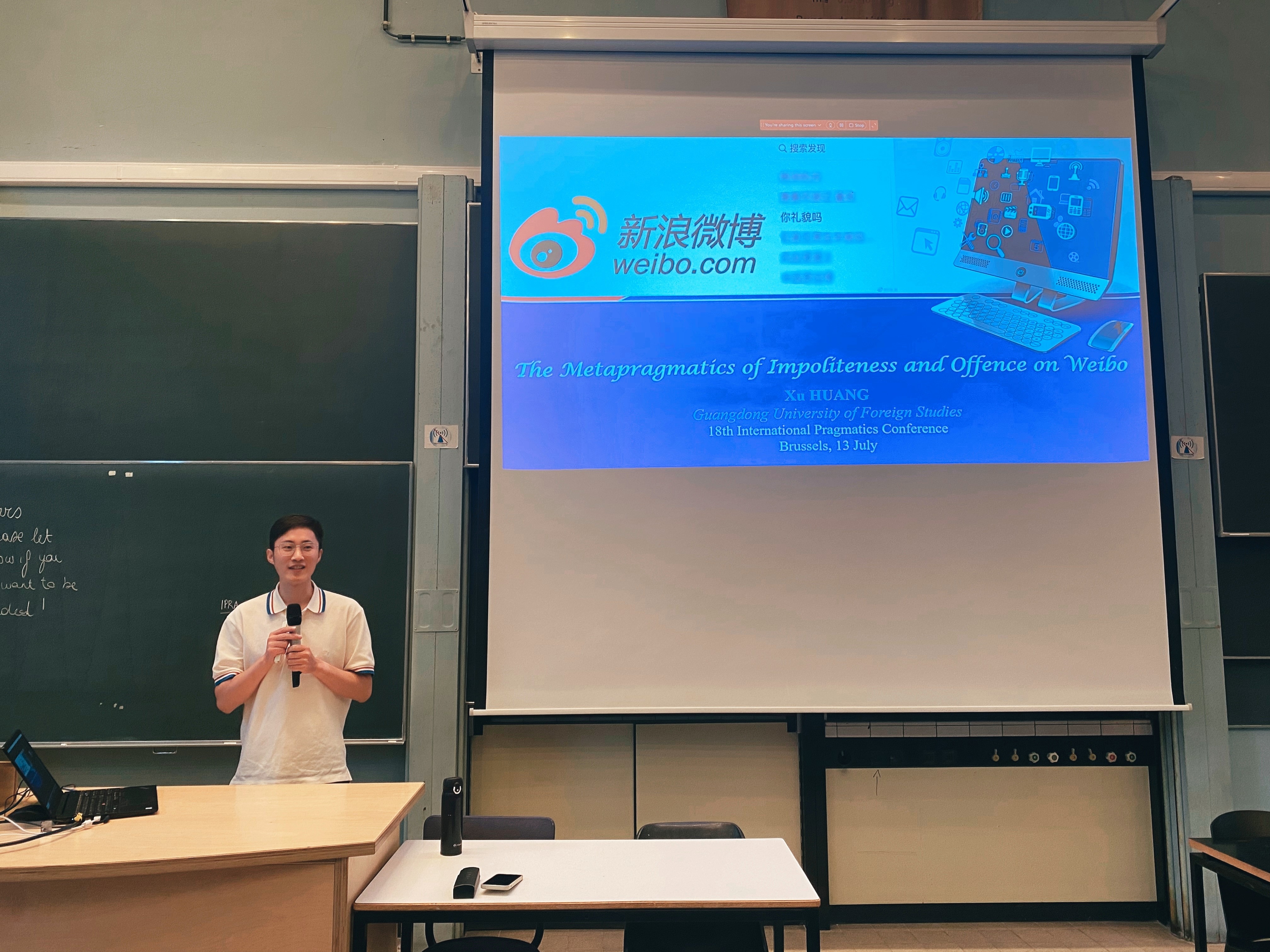 2023年7月9日至7月14日,由国际语用学协会(International Pragmatics Association,简称IPrA)主办、布鲁塞尔自由大学(UNIVERSITÉ LIBRE DE BRUXELLES)承办的第18届国际语用学大会在比利时首都布鲁塞尔顺利召开。本次大会的主题是“The shape of interaction: The pragmatics of (a)typicality”(交际的形式:典型性与非典型性的语用学研究)。会议采用线上线下混合形式,包括主旨发言、专题研讨、个人发言、海报展示等多种学术交流活动。本次大会吸引了全球1500余名语用学者,共设有近130个专题论坛。我院教师刘平教授和黄旭博士以及博士生杨璘璘和陈嘉亮参加了本次大会。