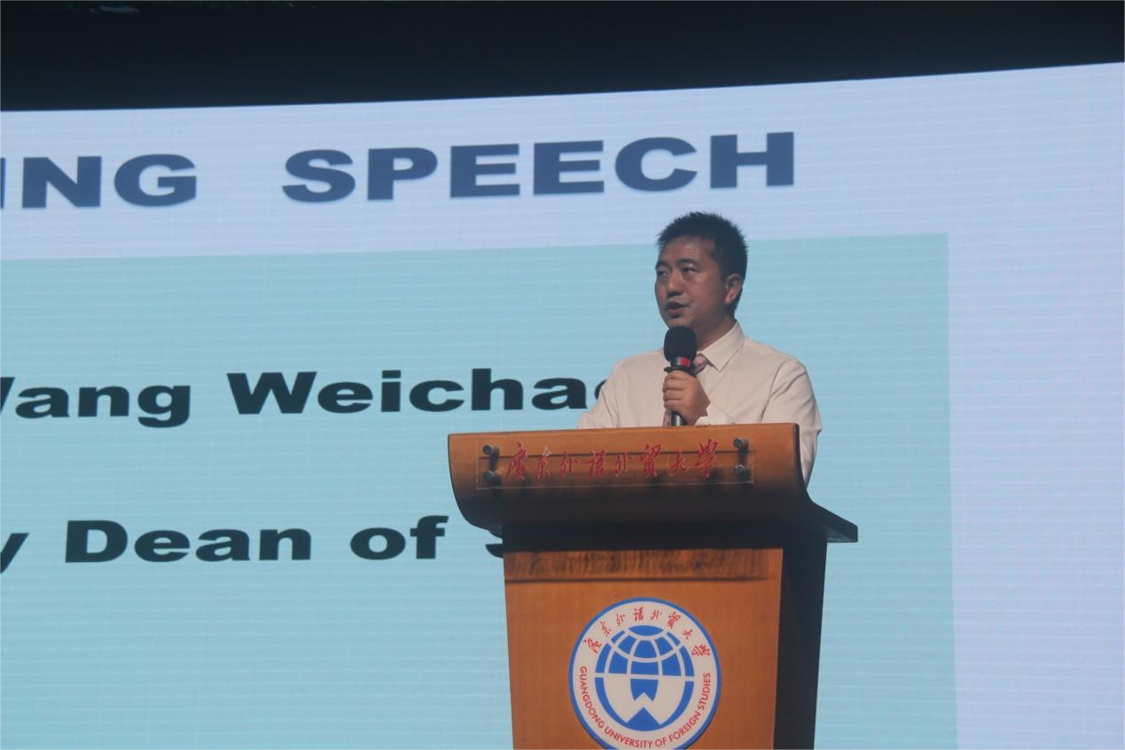 比赛伊始,副院长汪谓超致辞,他分享了自己与广外的故事,鼓励学生保持热情、热爱生活,表示学生要“ looking at the stars and keeping our feet on the ground.”,并希望在本次比赛中每个人都有所收获,祝愿所有选手能发挥出他们的水平与风采。