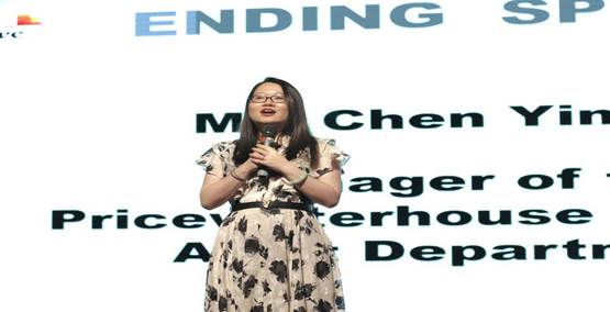 本次比赛赞助商普华永道特邀嘉宾陈颖菲高度肯定了选手们的表现,强调了英语学习的重要性。同时看到商英学子在舞台上的表现,表示十分希望能够和商英学院保持合作关系,感谢商英学院为国家、社会培养了如此优秀的人才,普华永道也会提供更多机会,欢迎优秀的商英学子加入普华永道。