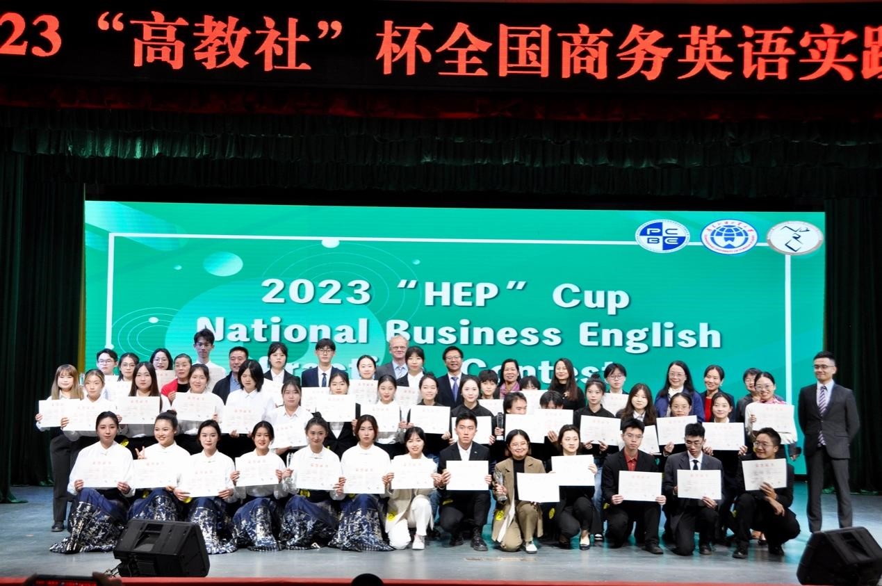 2023年12月2日晚19:00,2023 “高教社”杯全国商务英语实践大赛总决赛在广东外语外贸大学北校区六教报告厅顺利举行。学校党委副书记李云明、商英学院院长胡春雨、党委书记苏冬燕、副院长汪谓超、副院长杨文慧、党委副书记杜焕君等领导嘉宾莅临指导。来自高校和业界的7位知名教授、高管担任本届大赛评委。来自上海对外经贸大学、北京林业大学、攀枝花学院、广东财经学院、曲阜师范大学和广东外语外贸大学的六支参赛队伍在前阶段的比拼中脱颖而出,在这个夜晚展开精彩角逐。