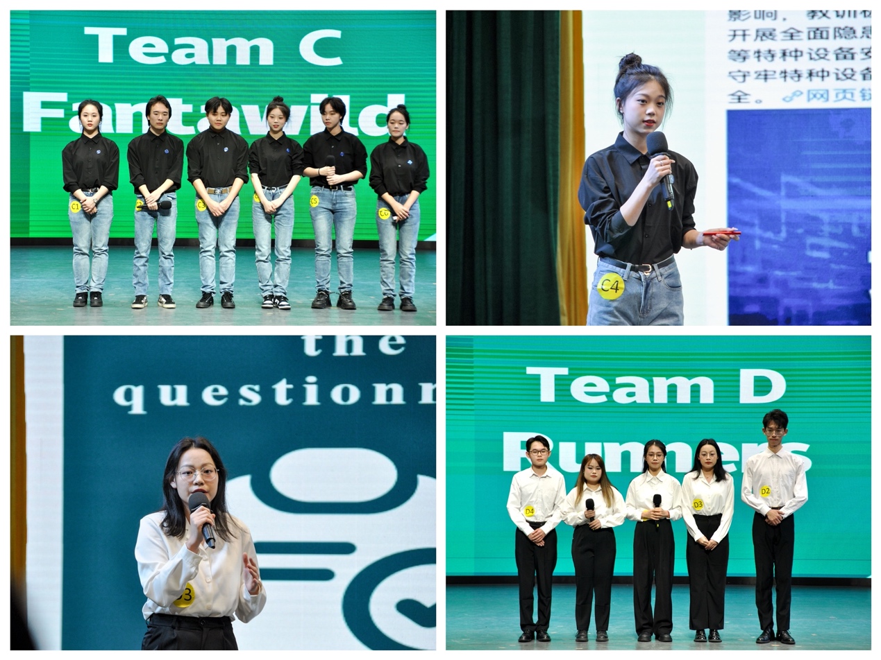 比赛过程中,参赛选手们在13分钟内从多方面全英解说各自队伍的调研成果,展示了高素质复合型商务英语人才的英语水平和实践能力以及国际视野。