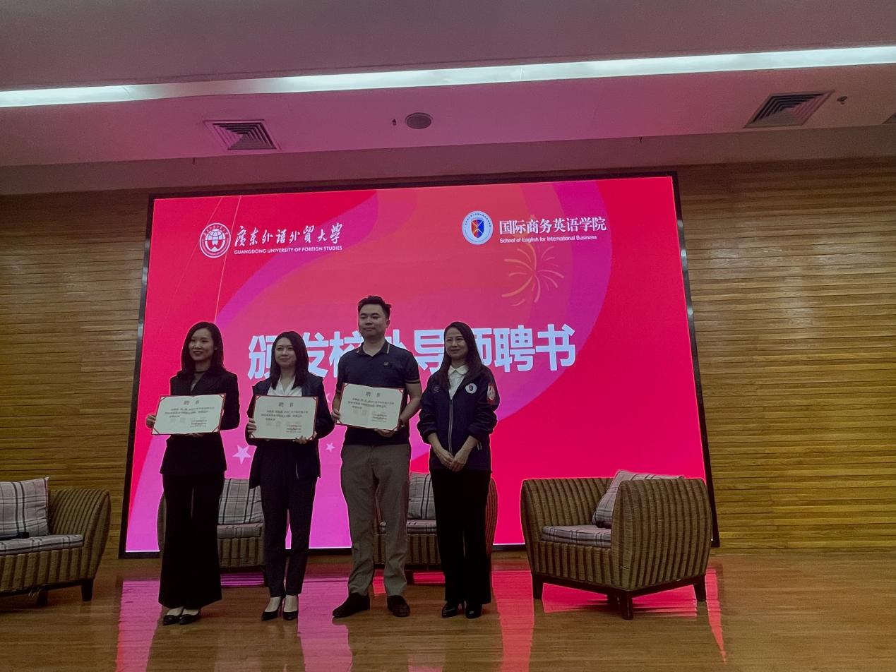 会议开始,杨文慧副院长首先隆重介绍了出席本次论坛的校友嘉宾,他们分别是①北京大学光华管理学院工商管理硕士,江西志特新材料股份有限公司新能源事业部总经理陈琳女士。②昆士兰大学商务硕士,广东外语外贸大学2006级国际商务专业校友,凯丽希培育钻石(广州纯钻贸易有限公司)董事长兼CEO郭升先生。③广东外语外贸大学2007级国际商务专业校友,亲子陪伴品牌“圈博士亲子”创始人谢秋阳女士。随后,杨文慧副院长为三位校友嘉宾颁发校外导师聘书。