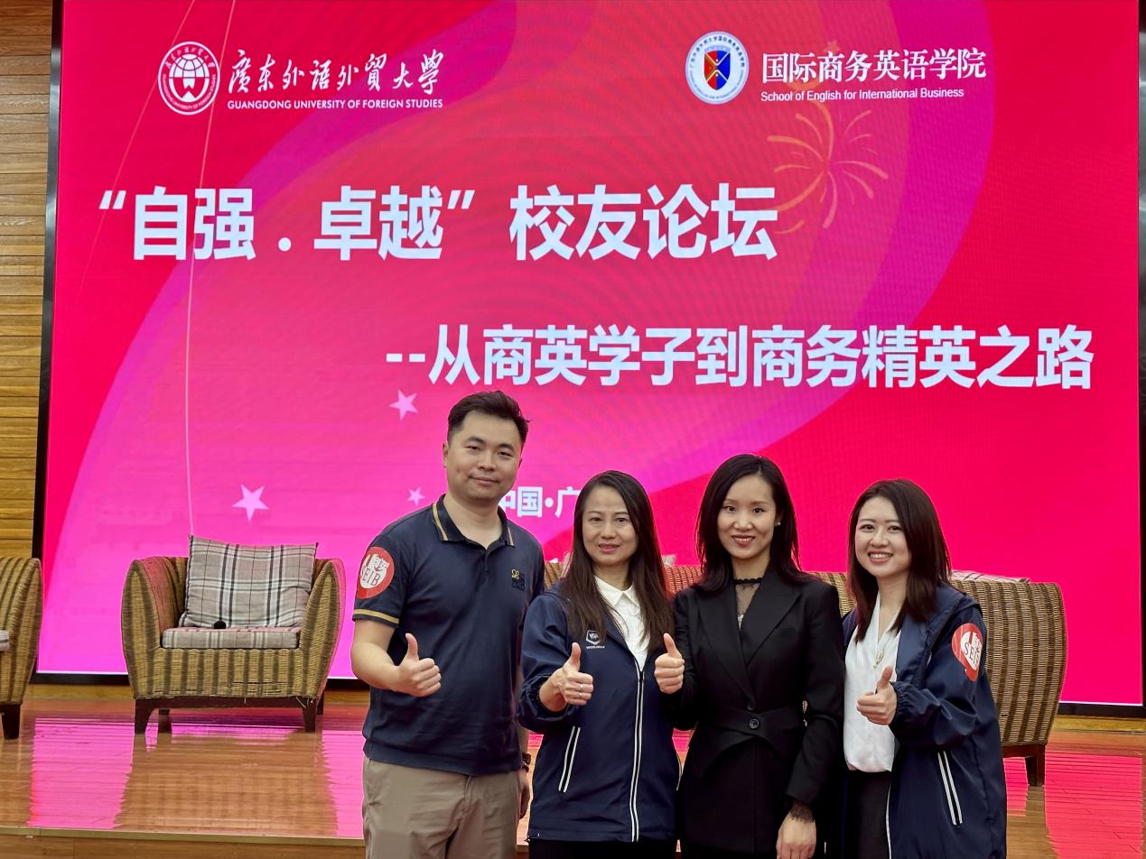 2023年12月10日下午四点,国际商务英语学院“自强·卓越”校友论坛在白云山校区图书馆报告厅隆重举行。国际商务英语学院杨文慧副院长、校友嘉宾陈琳、谢秋阳及郭升出席此次论坛。会议由杨文慧副院长主持。