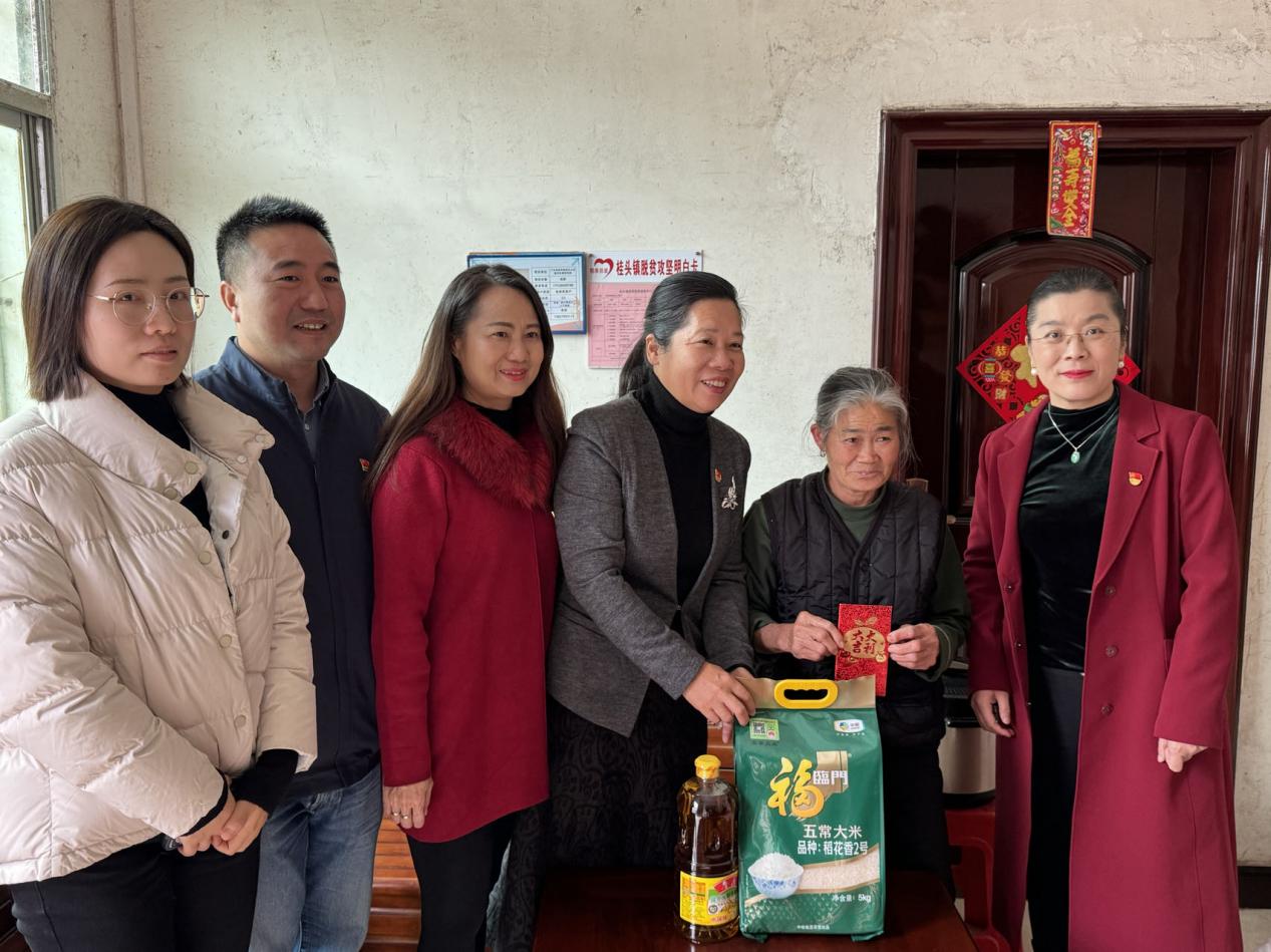 次日下午,商英学院全体党委委员前往乳源县桂头镇帮扶点,开展“真情帮扶暖人心”慰问活动,为对口帮扶农户送上慰问品和慰问金。学院党委书记苏冬燕与建档立卡户亲切交谈、嘘寒问暖,询问对口帮扶农户的家庭经济收入、生产生活和帮扶政策计划落实情况,倾听他们的所需所想,并鼓励他们坚定信心、自强不息,以勤劳和智慧致富。