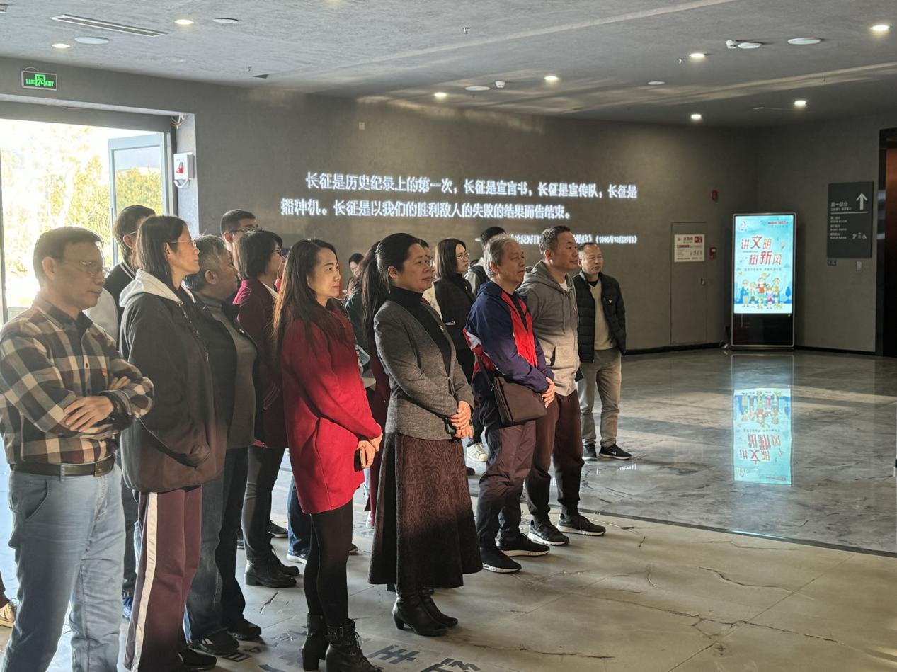 本次参观学习中,通过光影和音效生动地呈现了红色革命历史事件,教师党员身临其境感受到共产党人创业之初的艰险,从跨越时空的长征精神中汲取“恒久力量”,在实现中华民族伟大复兴的历史进程中走好新时代的长征路!
