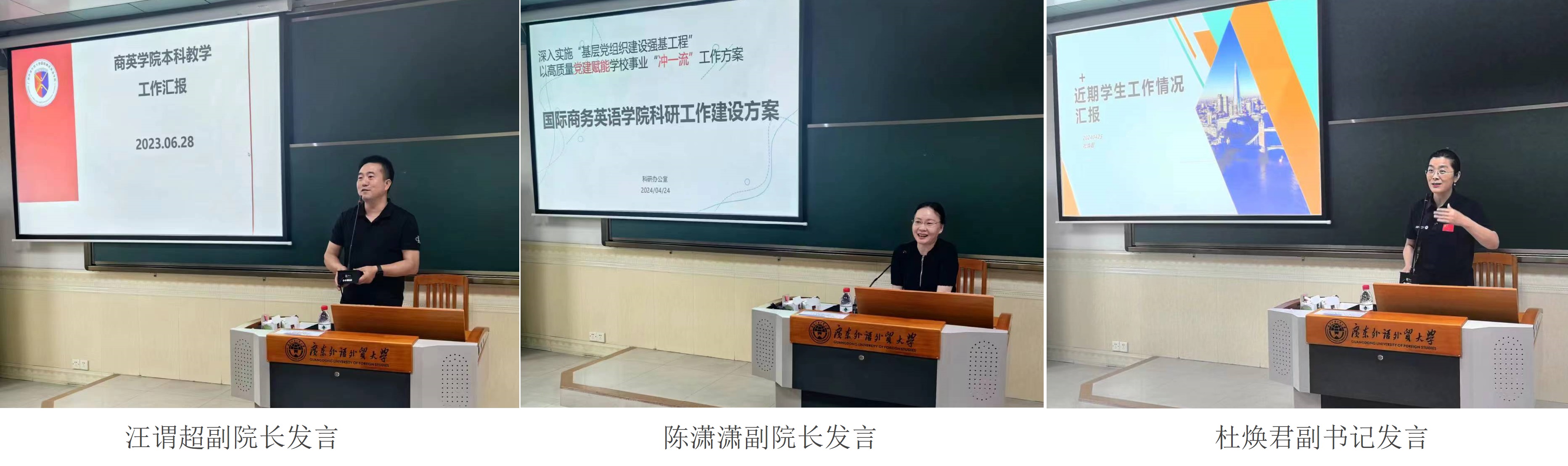 随后,汪谓超副院长、陈潇潇副院长、杜焕君副书记分别就本科教学、研究生培养、科研发展以及本科招生和毕业生就业工作进行通报和重点工作布置。