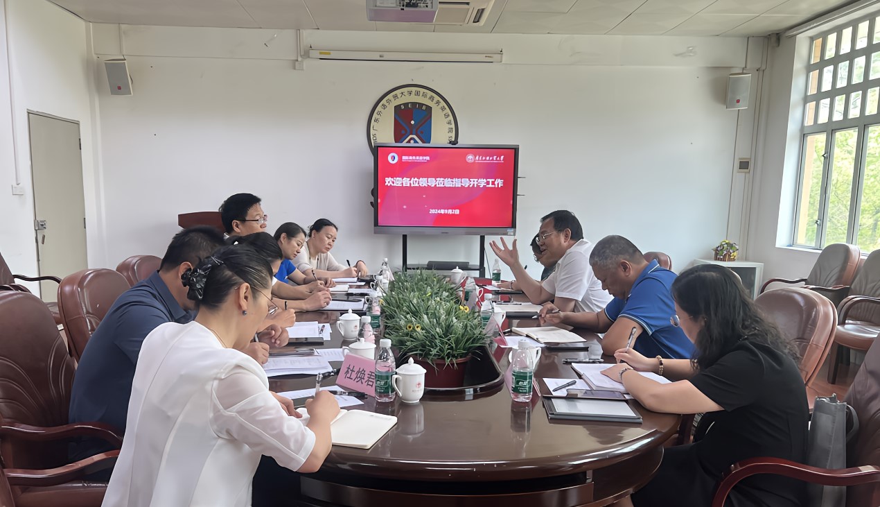 9月2日上午,刘建达副校长率队莅临我院检查指导新学期开学工作,招标采购中心主任吴民、图书馆(档案馆)馆长陈红霞、国际合作交流部副部长徐艺青等陪同检查。我院院长胡春雨、党委书记苏冬燕、副院长杨文慧、汪谓超、陈潇潇、党委副书记杜焕君参加会议。