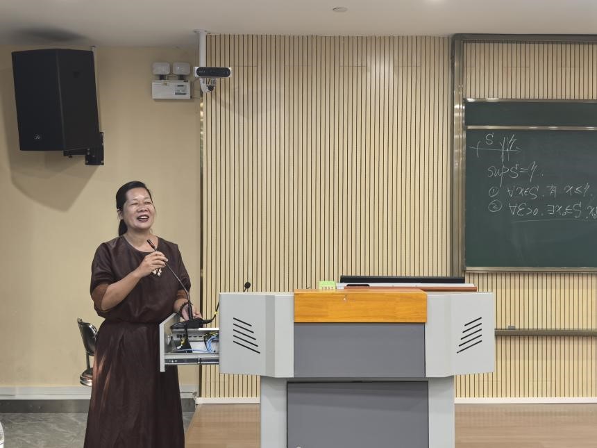 9月19日下午,广东外语外贸大学国际商务英语学院主办的“快乐学数学——我行”数学学习专题讲座顺利开展。讲座由广东外语外贸大学数学与统计学院殷洪才副教授和张建梅副教授主讲,国际商务英语学院党委书记苏冬燕、副院长汪谓超、辅导员林童和2024级本科生参与了本次讲座。