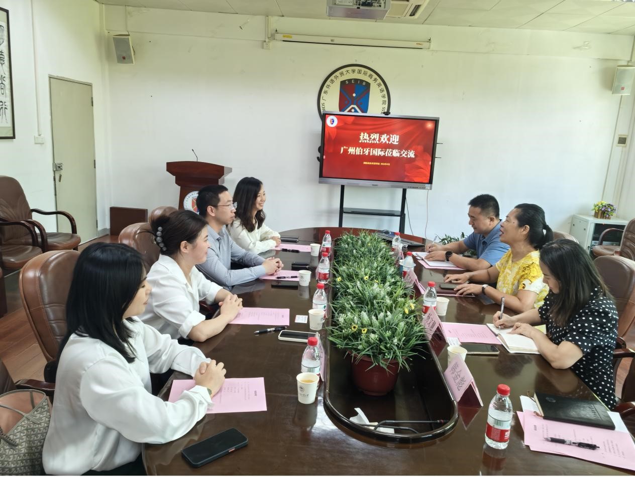 苏冬燕书记对广州伯牙国际苏安江总经理一行的到访表示欢迎,介绍了学校的发展情况和我院人才培养特色及培养模式。她指出深化校企合作,拓展学生实习实践项目、挂牌海外实习实践基地等举措,能够有效提升我院人才培养质量。