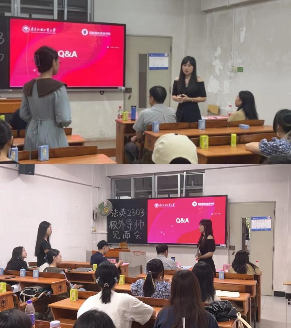 此次法英2303班校外导师见面会暨经验分享会的成功举办,是学院在落实“四导一体”人才培养计划、创新人才培养模式的进一步探索和实践,加深了学生对专业领域的理解,还为他们提供了宝贵的职业指导和人生经验分享,进一步激发了学生的学习热情与职业规划意识。今后学院也将积极探索更多元化的校企合作、产学研结合路径,拓宽学生的实践平台与就业渠道,助力学生在激烈的竞争中脱颖而出,成为具有国际视野、创新精神和实践能力的高素质复合型人才。