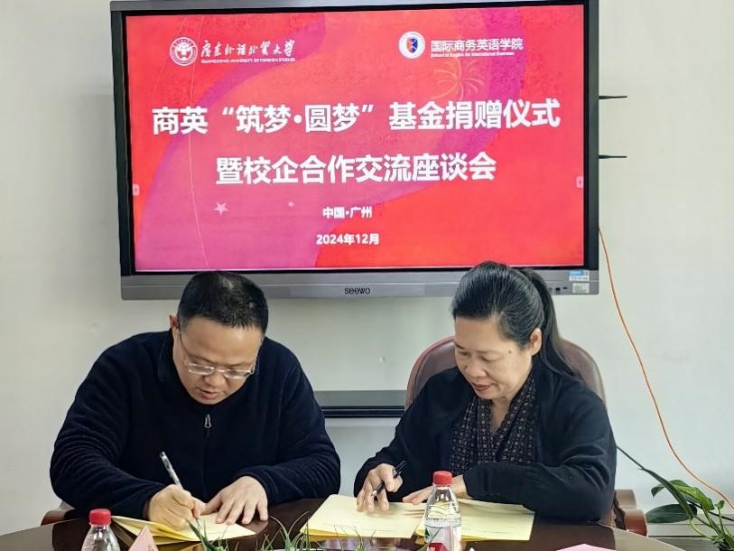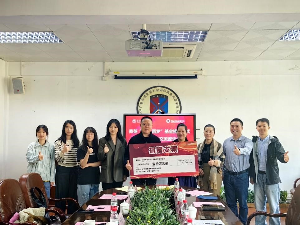 李善兵董事长指出,公司高速、稳定的发展,离不开工厂资源、客户资源以及人才资源这三大关键要素,此三者相互交融、协同配合,共同构筑起一个高品质的发展平台。自 2021 年首次招聘广外毕业生起,广外每年都为公司源源不断地输送了一批专业素养过硬、进取意识过人的优秀毕业生,这些新鲜血液的注入为公司的建设与拓展发挥了极为关键的推动作用。商英学院紧扣市场对人才的需求不断改革创新,完善人才培养的措施,培养优秀的商英人才与慧发不断改革创新管理机制、培养员工的诚信感恩价值观初心相同。此次捐赠,一方面是秉持 “饮水思源” 理念的感恩回馈,另一方面也是为学校人才培养略尽绵薄之力。今年7月,公司已于广外附近设立分公司,不仅为广外学子提供稳定的实习与就业机会,也有利于进一步强化双方的互动合作与交流往来。