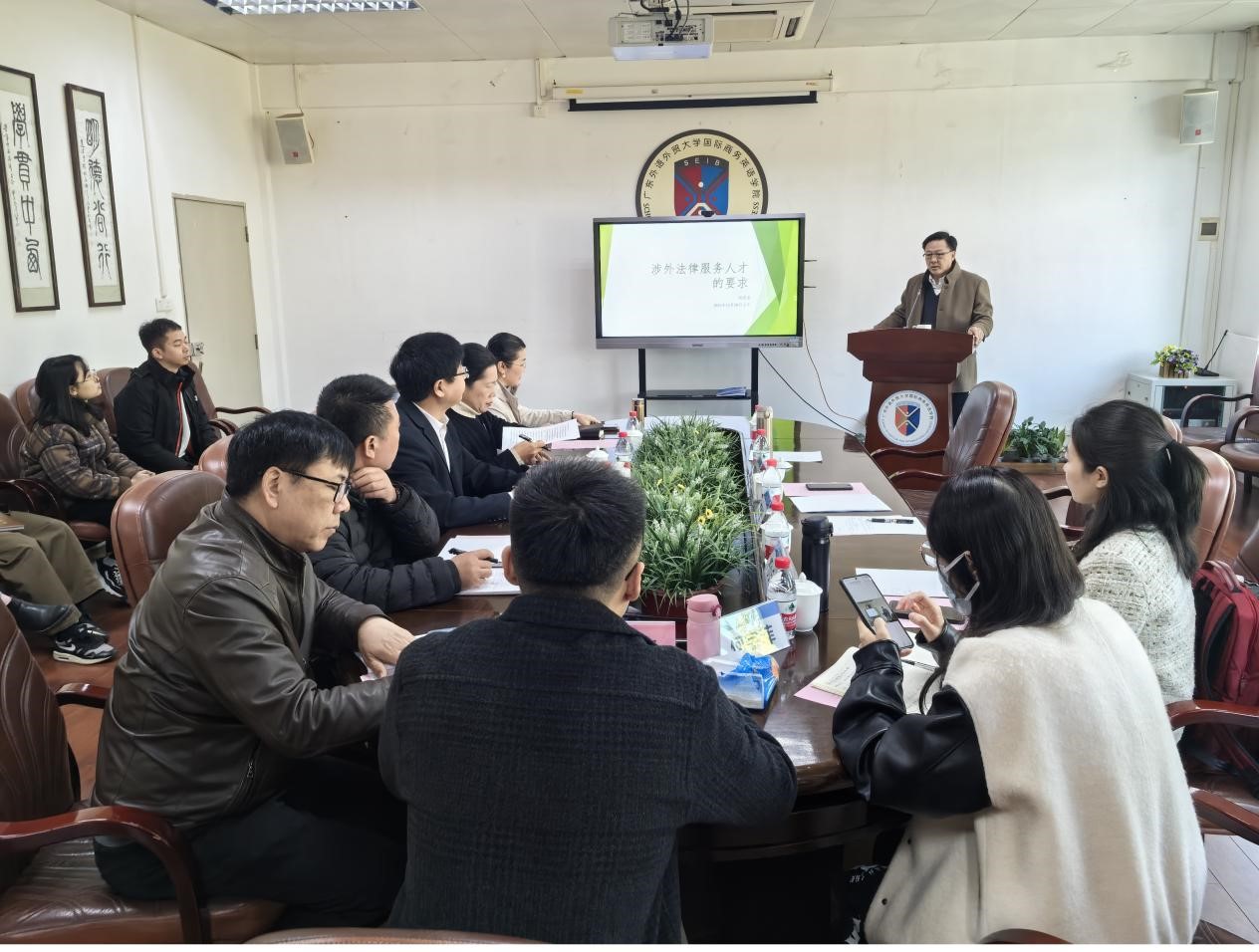 12月20日上午,商英学院邀请全国政协委员、香港立法会议员、香港国际公益法律服务协会主席、广州市律师协会涉外法律服务分会首任会长何君尧律师在三教318会议室开展《如何落实党的二十届三中全会《决定》第37段,构建涉外法律服务的“基建”?——涉外法律服务人才的要求》专题讲座。学院党委书记苏冬燕、院长胡春雨、副院长汪谓超、副书记杜焕君、各系主任、法英系全体教师和学工办全体人员参加会议,会议由学院党委书记苏冬燕主持。