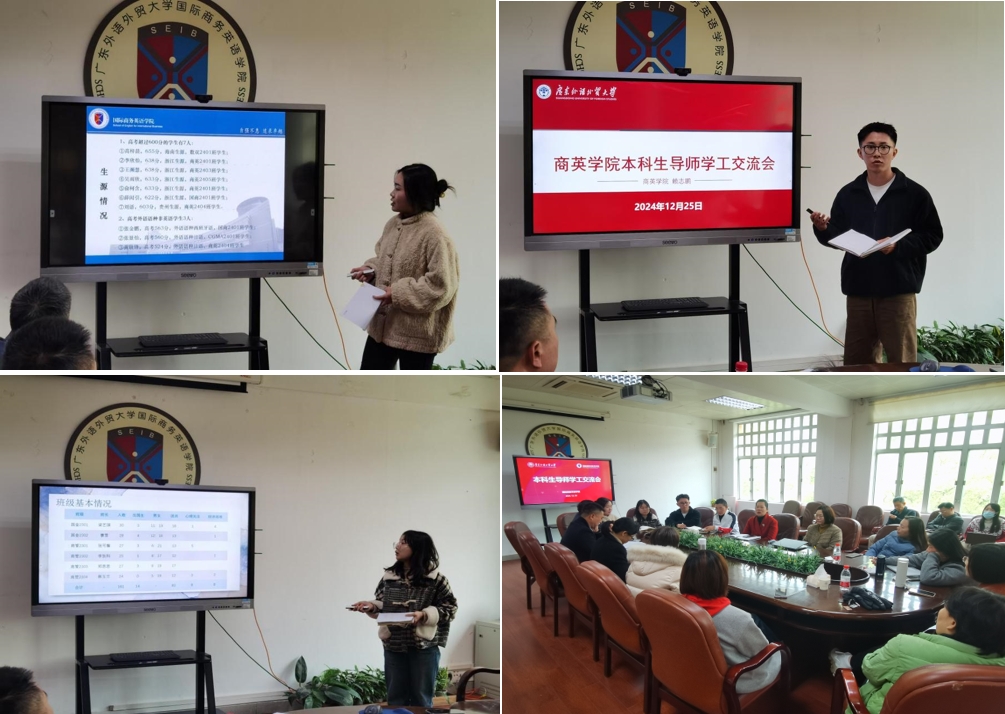 为落实“三全育人”要求,凝聚教育合力共同促进学生的全面发展,2024年12月25日中午,商英学院学工与本科生班级导师交流会在学院318会议室顺利召开。学院党委苏冬燕书记、杜焕君副书记、副院长汪谓超,2023、2024级本科生辅导员及班级导师们参会,杜焕君副书记主持会议。