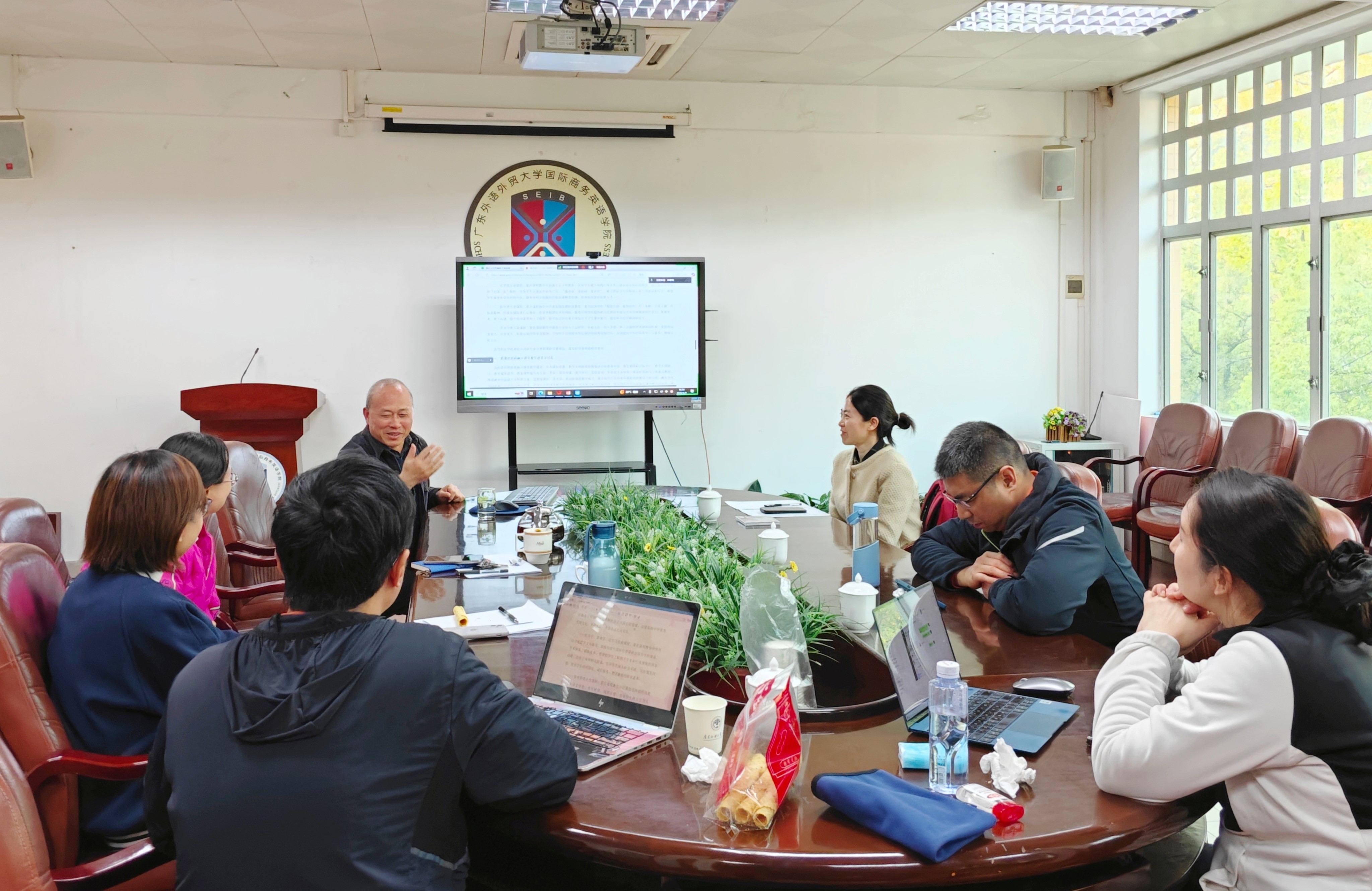 为推进课程思政建设,提升人才培养质量,2025年1月9日下午,国际商务英语学院英语教学部在3教318会议室举行了商务英语课程思政教学实践周教师教研活动。活动邀请我系即将赴任埃及艾因夏姆斯大学孔子学院院长的王小海教授做了题为“生态文明视域下的商务英语课程思政”的讲座。活动由英语教学部主任严小庆主持,英语教学部和国际商务系部分教师参加。