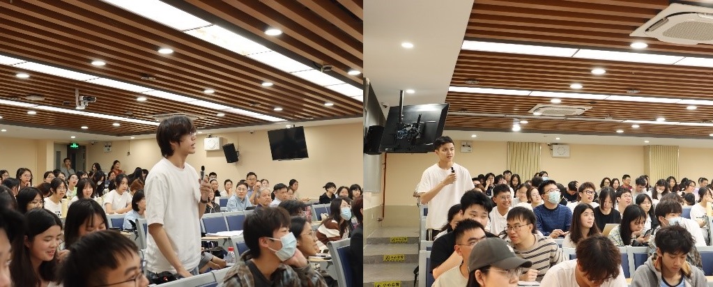 此外,何君尧还分享了自己作为政协委员的履职经历。他提到,自己曾提交涉及多个领域的提案,如在香港北部都会区建立中国传统文化艺术博物馆暨国际交易中心、推动涉外法律服务人才培训等。他强调,民间软实力在国际舞台上发挥着重要作用,应培养具有国际视野和跨文化交流能力的人才,讲好中国故事,提升中国在国际机构中的影响力。其观点得到了众多师生的肯定与赞扬,学生们在讨论交流环节纷纷就讲座内容以及自身关注主题向何君尧请教,现场气氛十分热烈。
