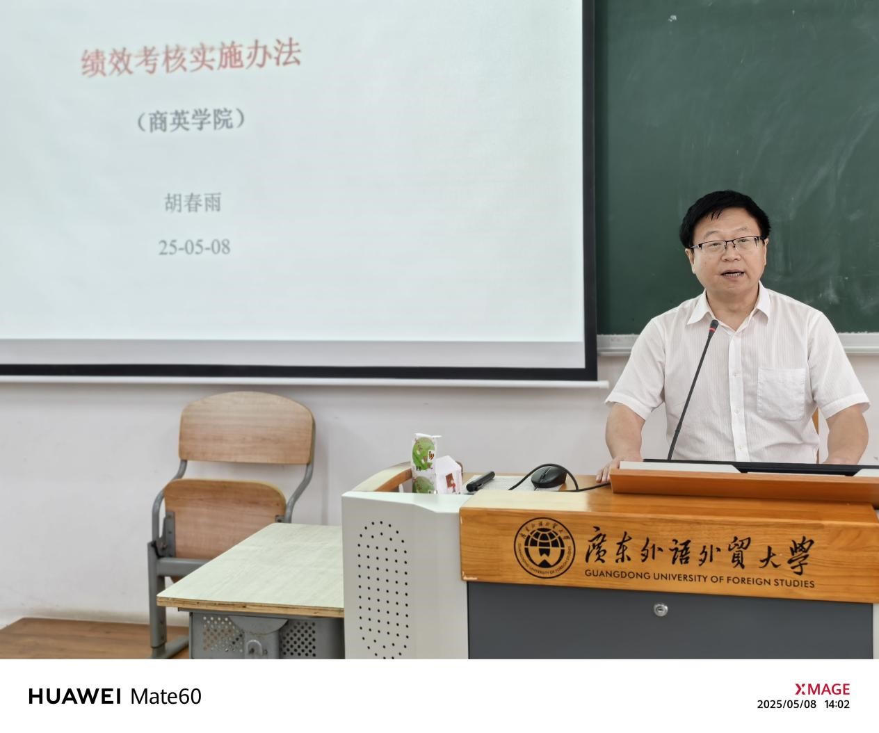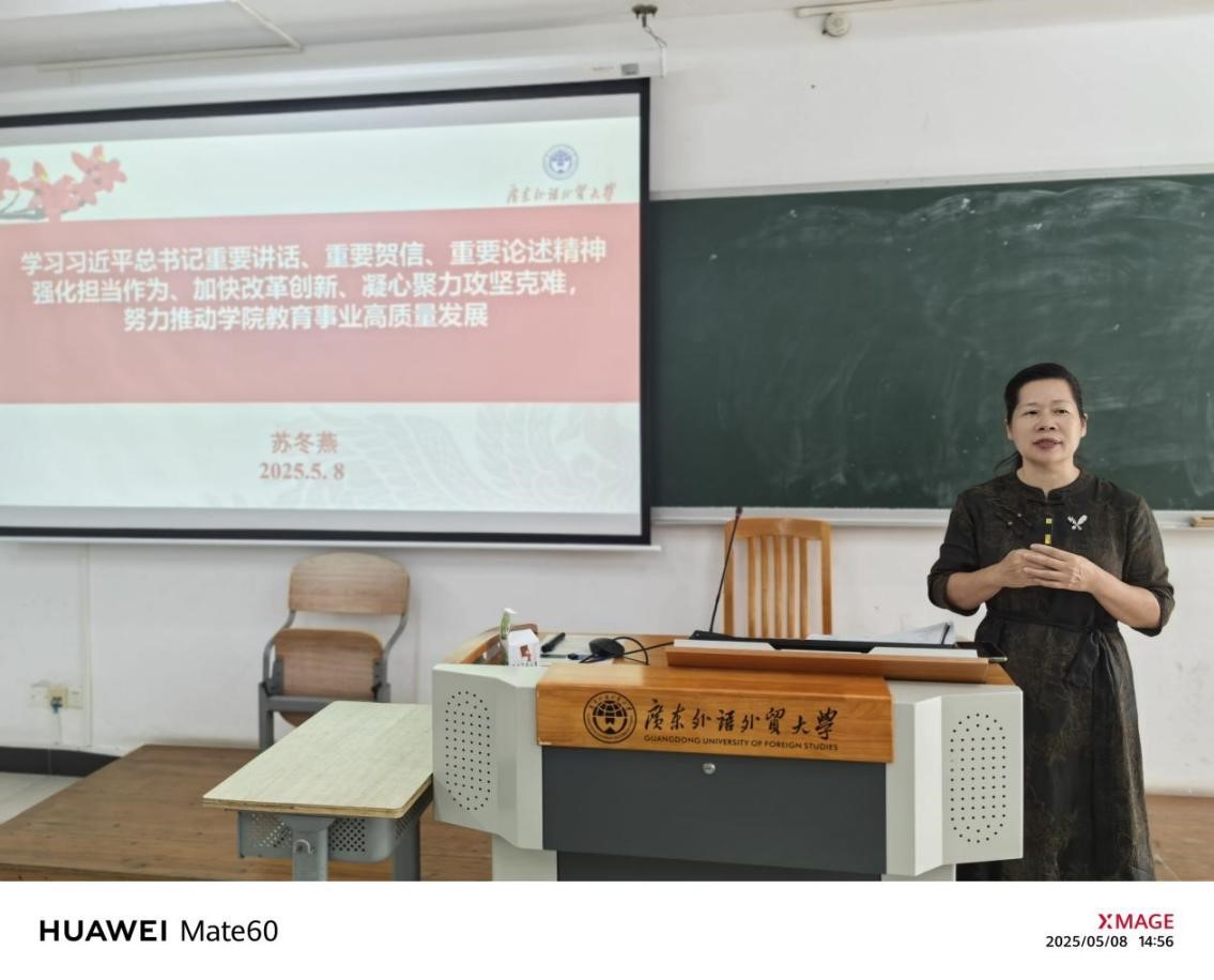 为推动学院教育事业高质量发展,2025年5月8日下午,商英学院于六教B302召开教工大会暨教工政治理论学习会。学院领导班子成员和全体教职工参加会议,会议由学院党委书记苏冬燕主持。