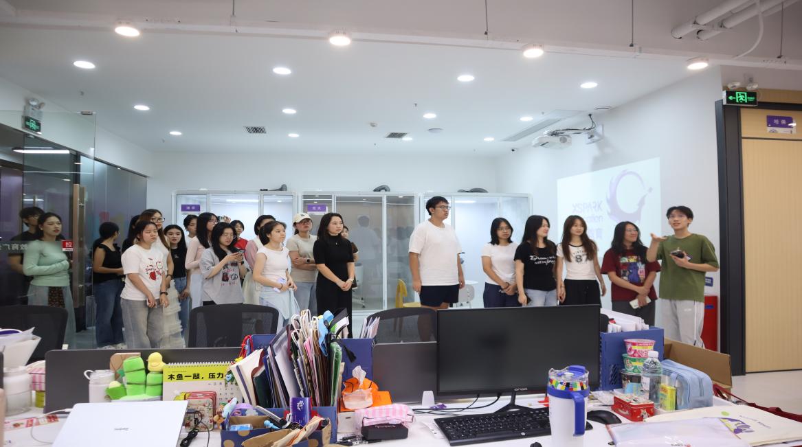 在星火教育工作人员的引导下,师生率先参观了企业办公区。从以长江、黄河等流域命名的会议室、一对一直播室,再到正扩建的录播室和舒适的休闲区,同学们直观感受到了企业开放包容的文化氛围。据悉,公司自2019年成立以来,办公区域从最初的单一拓展到如今的多区,员工规模从百余人增长至近500人。此外,星火教育还与华南理工大学、广东外语外贸大学等高校建立实践基地,为学生提供了丰富实习实训资源。