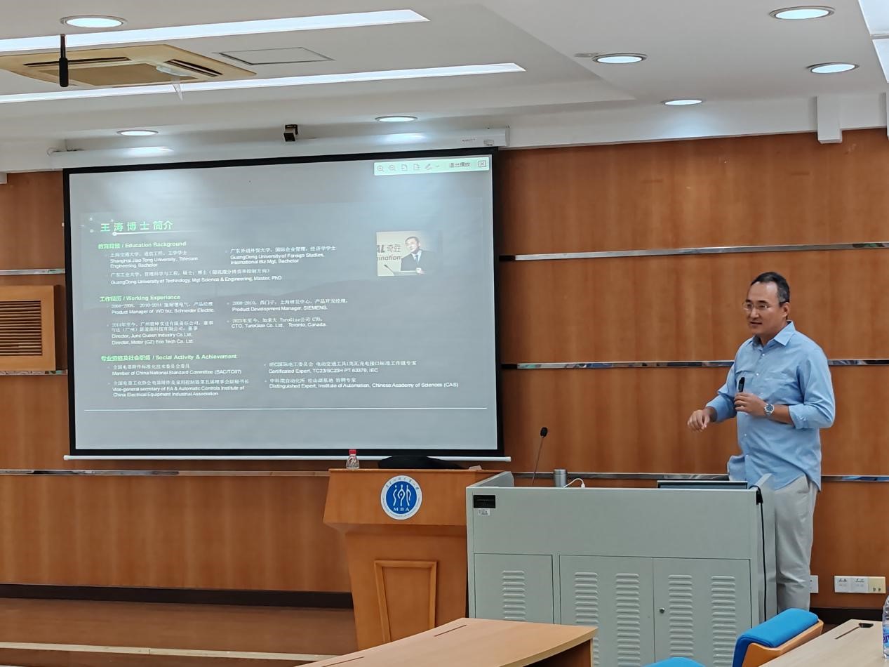 活动伊始,院长助理乐思伟简要介绍了王涛博士复合型的教育背景、资深行业经历,以及其在参与制定国际国内技术标准和社会职务方面的卓越成就,同时,强调了“行业专家进课堂”活动的重要意义,并鼓励同学们积极把握这一学习平台,将理论知识与行业前沿实践紧密融合。