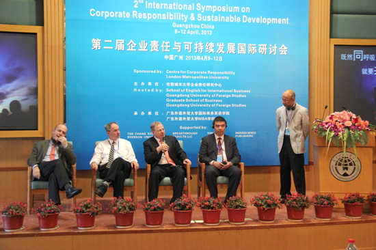现任北京师范大学社会发展和公共政策学院的中国社会责任研究所教授兼副院长的Bill Valentino则强调企业责任与可持续发展应在未来社会发展中得到更广泛的认同,企业应承担的社会责任在企业发展中不可推卸,与此同时,他还极其重视平衡关系在社会生活中的重要地位,这一观点与中国致力于和谐社会的建设相吻合。广东省政协委员、省私营企业协会副会长、省社会责任研究会副会长、广东商学院兼职教授林义鸿在演讲中对中国民营企业社会责任建设情况作了详细的分析。他分别从员工、消费者、政府、环境方面分析了民营企业社会责任缺失的原因。并提议加强政府机构的引导、促进行业协会的完善、加大区域商会的推动力、发挥媒体舆论的促进作用、加强对相关公众的监督力度。现任我校MBA学院教授的Robert Shaw则着重阐述了中西方的商业贸易在道德伦理方面面临的挑战及日后的发展方向。