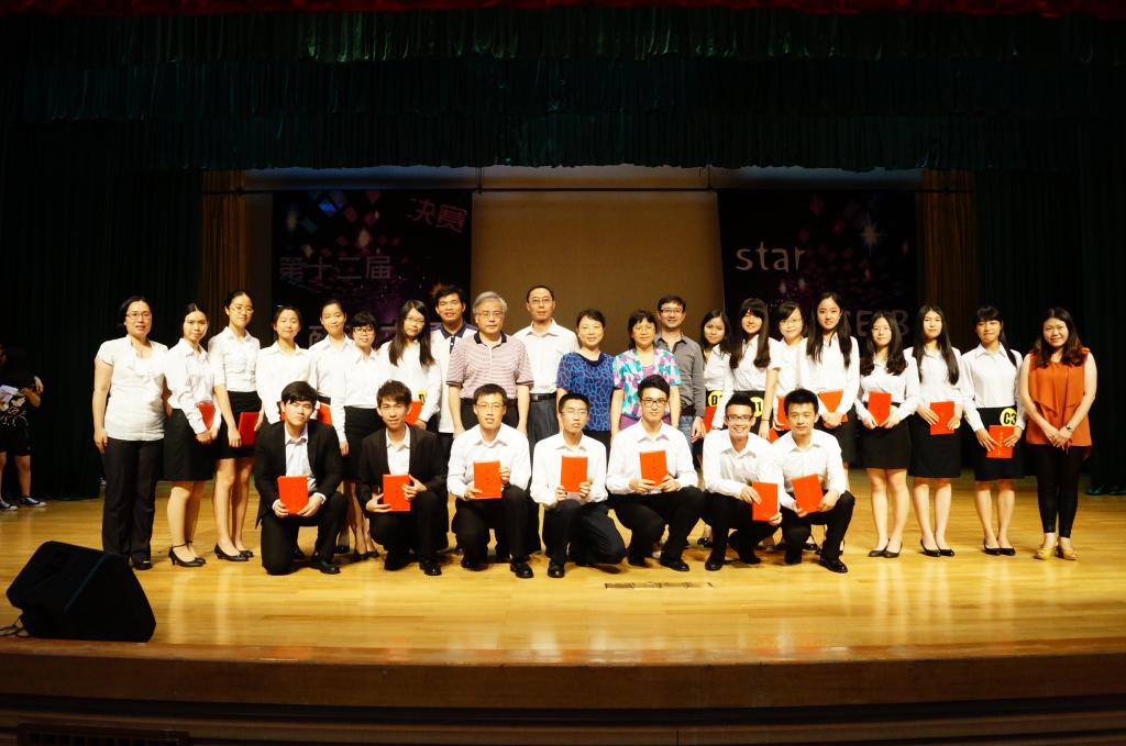 5月24日晚7点,国际商务英语学院第十二届“商英之星”英语综合技能大赛在六教报告厅拉开帷幕。大赛设置英文影视配音、新闻速记与时评、英文辩论赛三个环节,多方面考察了学生的综合能力。商英学院院长郭桂杭、党委书记车小真、副院长彭玲玲、吴易明,党委副书记张林茂出席了本次大赛。副院长彭玲玲、研究生办公室主任戴桂玉、经贸英语系系主任谢薇娜、英语教授贺志刚和王启担任评委。最终,Infinity队摘得桂冠,来自2011级国贸专业1107班甘家栋获得“商英之星”称号。