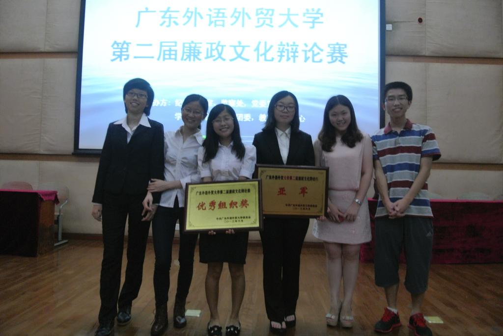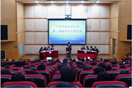 6月13日下午2点半,广东外语外贸大学第二届廉政文化辩论赛在南校图书馆报告厅隆重举行。此次决赛的两支队伍分别为商务英语学院和国际经济贸易学院。双方势均力敌,展开了一场激烈的竞争。最后,我院获得本次比赛亚军及优秀组织奖。