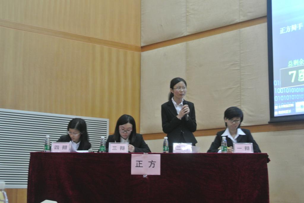 在接下来的攻辩和自由辩论环节,我院一直牢牢抓住这一基本点,再加以丰富的事实论证和严谨的理论支持,充分论证了诚信的重要性。其中还提出“面对现今因诚信缺失问题而导致的社会状况我们该如何解决?”此类令人深思的问题。之后面对评委的辛辣问题——“我们在和日本的外交过程中也要遵守诚信把一切国家机密都告诉他们吗?”,正方四辩霍雨佳做出了机智的回答:我们所倡导的诚信的人并不等同与愚蠢的人,国家要有秘密,但不代表可以不讲诚信,难道有人问你的银行卡密码你也会告诉他吗?