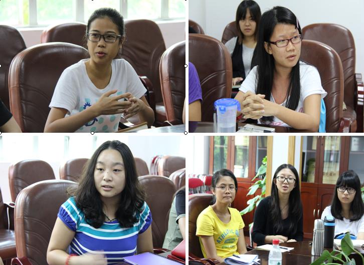 来自不同年级的同学们畅所欲言,同学们纷纷表示,商英学院学生工作队伍务实清廉、一切以学生利益为出发点,对中央八项规定落实到位、在“四风”方面不存在突出问题,总体情况比较满意。但在部分方面也存在不足,如教学实践方面,同学们普遍反映的问题包括:课程设置的比重不合理、创业类相关课程指导性不强实效性不高、经管法类专业课程太过泛滥、嵌入式整天计划欠缺、外语类教学对外交流较少等;在校园生活方面,同学们就宿舍阳台无插座出现安全隐患问题、宿舍设施太过陈旧、宿舍空间较为狭小、校园周边野猫较多、后勤意见簿有效反馈和利用等方面提出意见和建议。