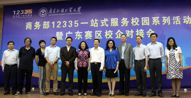 “将学生的在校教育与实践、就业相结合,提高学生的商务知识技能、实际操作技能和就业竞争力。”4月24日晚,由商务部外贸发展局主办、我校商英学院承办的“12335”一站式服务校园系列活动暨校企对接会在北校区图书馆报告厅举行。商务部外贸发展局处长董雪、副处长周凌,我校副校长方凡泉,教务处处长焦方太,商英学院院长郭桂杭、党委书记车小真,新华社经济参考报编委、新媒体中心主任王小波,以及来自中国对外贸易广州展览总公司,中国五矿集团五矿国际广告展览有限公司,中国中信集团中信国际商贸有限公司,中国包装总公司、中包联外经实业有限公司的企业代表等出席活动。商务部12335商务知识竞赛广东赛区获奖选手以及我校200余名学生参加了此次活动。活动由车小真主持。