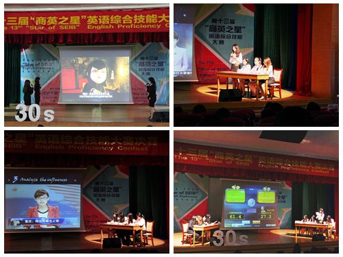 幽默夸张的动画配音,严肃紧张的新闻复述,言辞犀利的英文辩论,还有妙趣横生的评委提问等伴随着四支参赛队伍的精彩亮相接踵而至。5月27日晚7:00,第十三届“商英之星”英语综合技能大赛在六教报告厅拉开序幕。 “HOHO”队,“Alive”队,“4Bstars”队以及“Whatever”队4只队伍经过院内初赛、复赛,走上决赛的舞台。最终“Whatever”队获得一等奖,邵丹获“商英之星”称号。校团委副书记陈兵,国际商务英语学院院长郭桂杭,党委书记车小真,副院长吴易明、彭玲玲,党委副书记张林茂等出席了本次比赛。来自全国数十所高校的参加商务英语本科教学开放周专业课老师观摩了此次比赛。