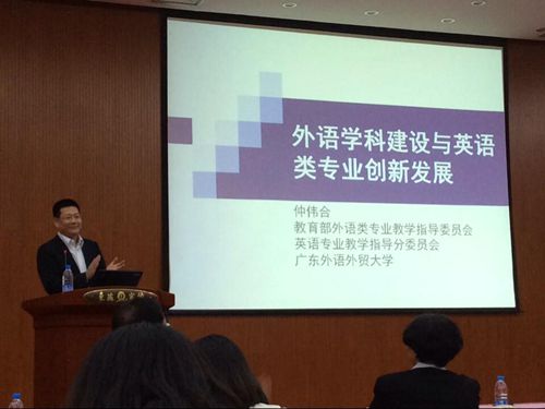 会上,我校16位师生代表与来自全国高校的400多名商务英语教学与研究领域的专家学者齐聚烟台,围绕本次研讨会的主题“教学质量标准建设和商务英语专业人才培养”进行了深入探讨。我校仲伟合校长做了题为“外语学科建设与英语类专业创新发展”的主题发言。仲伟合首先介绍了外语学科概况、内涵与范畴,阐释了我国高等教育由英语专业到英语类专业变迁的历史背景、发展阶段、面临的问题、发展趋势,并以三份教学大纲为主线介绍了从英语到英语类(含英语、翻译和商务英语三专业)的现状,尤其着重强调了“新国标”对于英语类专业创新发展的指导和要求。从2007年全国第一个商务英语本科专业正式得到教育部批准设立,到截至目前已经有216所高校开设了商务英语专业。针对这一快速发展的现状,根据“新国标”,仲伟合在发言中详细介绍了商务英语专业的培养目标、商务英语人才知识与能力构成、课程设置、商务知识标准、教学原则、教学方法与手段,并提出了六条新的发展思路,得到了与会专家和学者的一致赞同和响应。