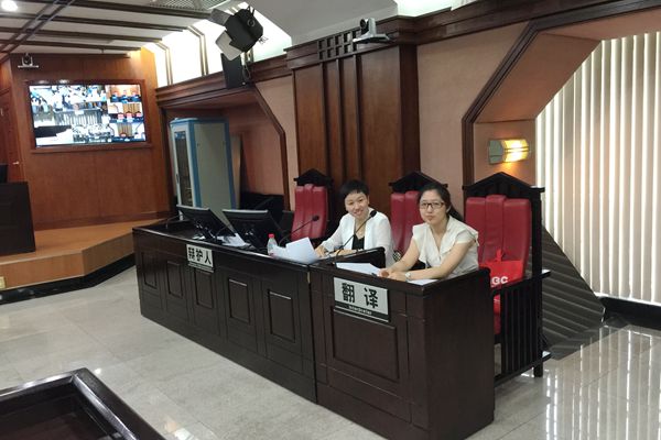 答:沈老师负责当天观摩的庭审的法庭口译工作,而我和我的搭档负责当天在广州中院新闻发布中心的会议同传工作。我们负责当天除庭审口译外其它所有的会议口译工作,主要是在庭审观摩前向参会代表翻译中院廖荣辉副院长致词和对法院的基本介绍,在代表们的庭审观摩结束后,翻译中院刑一庭万云峰庭长以“改革和完善中的中国刑事审判”的为题的大会演讲。