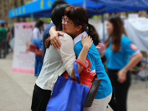 志愿者热情欢迎校友