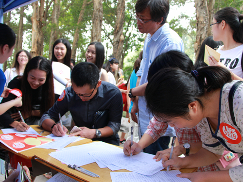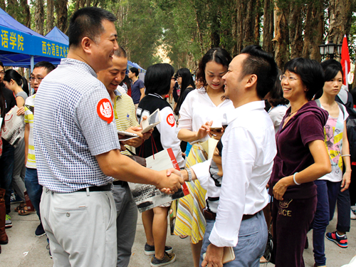 白云山青,碧溪水蓝,校庆当日,广外校园里每一草一木均是喜气洋洋,整个广外都沐浴在校友的真诚祝福海洋之中。而身为广外一份子的商英学院早早准备好,在院长郭桂杭、党委书记车小真等院领导细心指导和学生志愿者的细致服务下,热烈欢迎上千名商英学院校友回家。