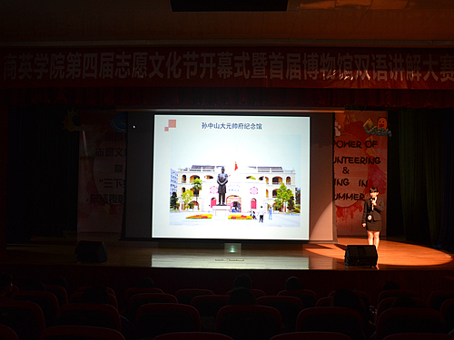 近年来,随着博物馆教育职能的发展,外籍旅客的数量增加,对具有英文讲解能力的博物馆讲解员的需求也不断增大。而在国际商务英语学院Horizon青年志愿者协会的组织下,商英学院有大批同学加入到博物馆义务讲解的志愿活动中,获得了丰富的社会实践经验。为增强商英学院学生的社交能力,语言表达能力,临场组织能力和综合运用能力,特举办博物馆中英讲解大赛。本次大赛分有备中文讲解和现场英文讲解两部分进行。