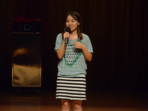在现场热烈的欢呼声中,来自商英学院国商创新1401的1号选手郭雅菁大方优雅地走上台,开始了对古时陶屋模型的讲解,从干栏式房屋到曲尺式房屋,三合式房屋到楼阁式房屋,细致地对房屋结构进行了分析,让观众们了解到不同时期人民居住条件。而同样来自国商创新1401班的李慧同学在开场讲解中,以“铜壶漏断梦初觉,宝马生高人未知”引入到她所要讲的铜壶滴漏上,从铜壶滴漏的计时原理、历史发展以及来源三方面进行精炼的讲解,在她看来,铜壶滴漏不仅是计时工具,还是广州的一道绝美风景。3号选手王爽紧接着上台,用无声视频配音的方式将汉代文化呈现出来,详细地介绍了西南汉越王博物馆的丝缕玉衣和文帝行玺金印,伴着充满古风的背景音乐,观众陶醉其中。