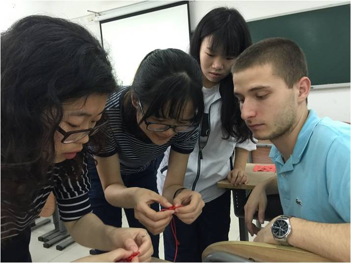 4月5日和4月12日,考文垂大学和我院学生进行交流活动。见面会上,考文垂的学生介绍各自的文化风俗和专业背景,并与我院学生一同参与“你画我猜”、“四图一词”等游戏,增进了彼此之间的了解,加深了国内外学生之间的友谊。交流会上,我院学生与考文垂大学分享中国文化,包括剪纸、功夫和中国结编制等,在交流与分享中大家感受多彩的文化,度过愉悦的时光。