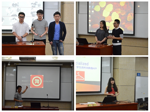 随后,我院五个学生创业团队进行了现场展示。GDOES团队经营的是自主设计和生产的校园纪念品、团体纪念品,以及代生产批发文化产品。GDOES团队注重品质,强调设计创意和用细节打动顾客。比逗广外团队由校内就餐的诸多问题萌生创业想法,通过与广州比逗网络科技有限公司合作,创立了广外比逗餐厅。其后的“O淘”与“Specialized”团队的创业设想都是通过创建APP提供服务,获得盈利,前者聚焦于校内二手教材资源的线上交易,后者则希望建立以3D试衣技术为特点的广州学生购衣平台。南京白局团队则希望联合社会力量,致力于南京白局这一富有南京地域特色的文化遗产传承与推广,他们现场展示了一段南京白局片段,让人印象深刻。校友导师分别就创业项目中存在的问题有针对性给出了点评与建议。