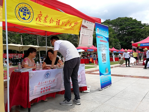清远招宣小组28日参加了在清远市体育馆举行的清远市2017年普通高校招生现场咨询会,136所省内外高校招生负责人到场为清远学子填报志愿支招,超3000人次到场咨询。我校招宣小组成员就学校招生政策、招生计划及志愿填报注意事项等与考生和家长进行了深入交流,耐心细致地解答了考生及家长的各种疑虑,助力广大咨询者全面、及时、准确地了解广外。