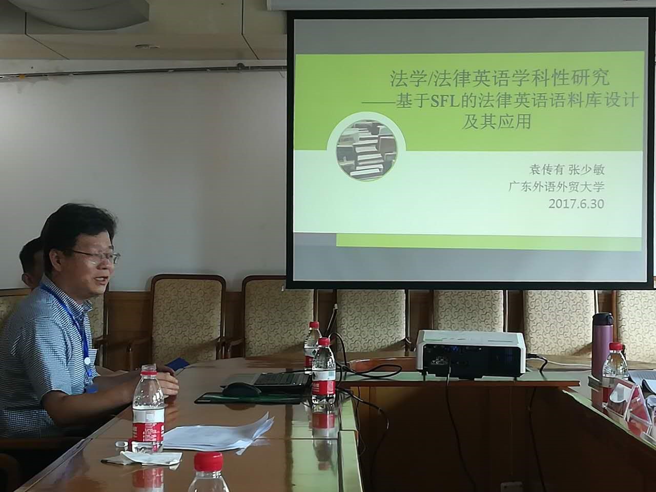 在第一分会场的小组发言中,我院法律语言学带头人袁传有教授和张少敏博士就法学/法律英语学科性研究做了精彩的展示。他们从系统功能语言学的角度阐述了法律英语语料库设计及其应用。在报告中,袁教授首先对法律英语的语言特征进行了描述,并联系学科英语的七大特征,指出基于语料库进行法律英语描述的必要性,进而从法律英语的语料库建设目的出发,阐释了法律英语语料库的定位、架构、建库原则等建库思路,并初步设立了建库的重要数据指标以及语料库的标记和标注规范,旨在为法律英语语料库提供设计依据、建设蓝图和应用愿景规划。