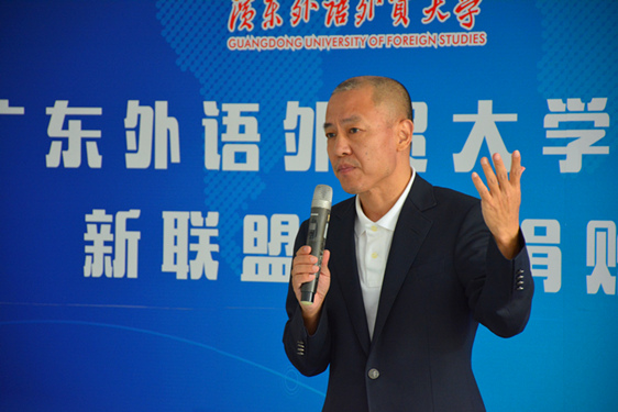 王秀民代表学院接受捐赠支票并致辞,她首先代表学院对李立新受聘为广外客座教授表示热烈祝贺,对新联盟集团向商英学院的捐赠表示衷心感谢。王秀民强调教育的进一步发展和让学生更好地适应社会形势的变化,不仅仅需要学校的努力,更需要社会各界的大力支持,以构建产学研相结合的形式实现合作共赢。她认为新联盟集团对促进大学生开拓事业和实践创新具有很好的教育意义,商英学院与新联盟集团的合作将为广外在人才培养和社会实践创新上做出有益探索。