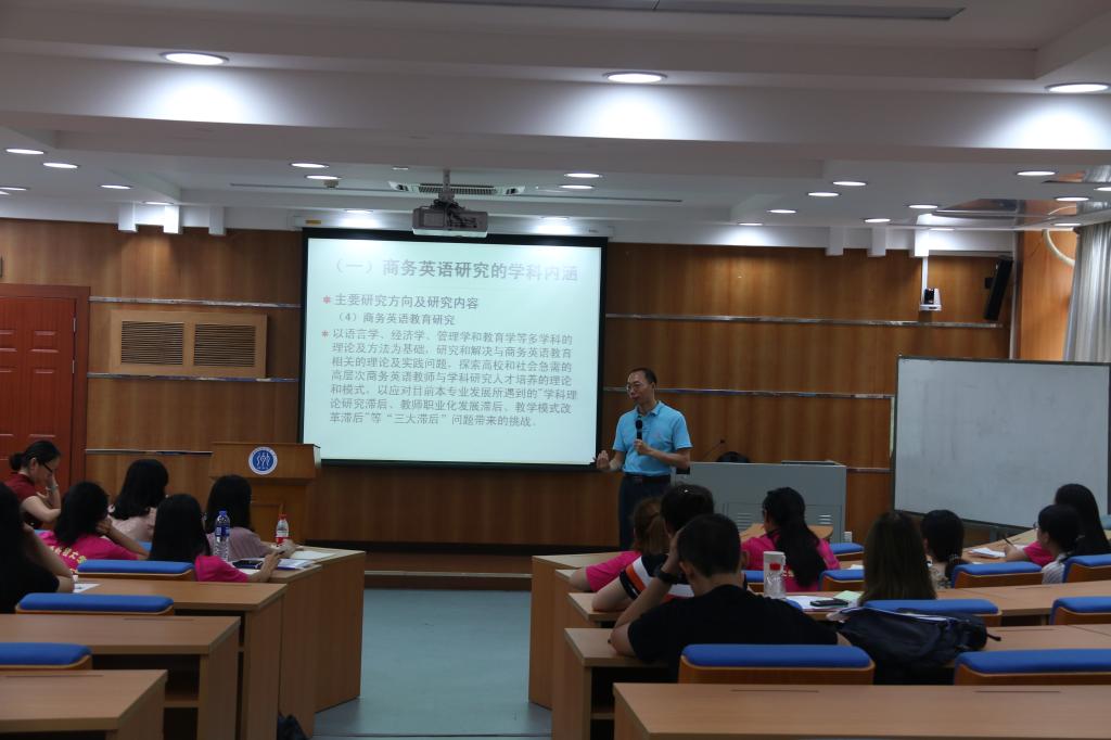 第二天是学术沙龙活动,我院张武保教授、陈开举教授、葛诗利教授、王伟强副教授、乐思伟老师分别就自身的教学经验、专业认知、科研项目、研究收获、求学历程等方面与学员们进行深入探讨与互动,让学员们更进一步了解商务英语的专业发展及研究前景。